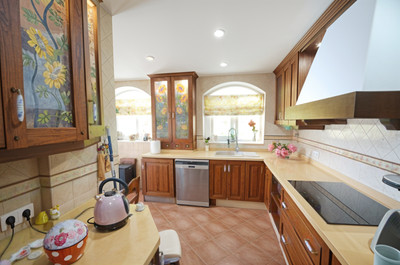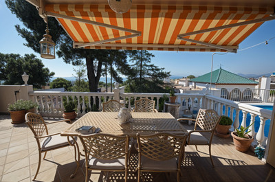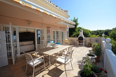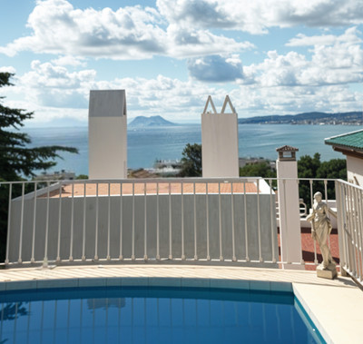The house boasts a spacious living room equipped with a fireplace, creating a cozy atmosphere for family gatherings or moments of relaxation. The fully equipped kitchen offers a functional and practical space with direct outdoor access. The 45m² front terrace, with a brick barbecue, is a perfect spot for enjoying outdoor meals while admiring the landscape and the sea. Next to the terrace, there is a private pool with grass and spectacular views of the sea and the Rock of Gibraltar. The property includes four bedrooms, two of them with built-in wardrobes, while the master bedroom features an en-suite bathroom with a hydromassage tub and shower. The second bathroom includes a shower.