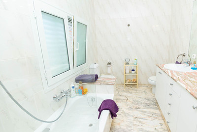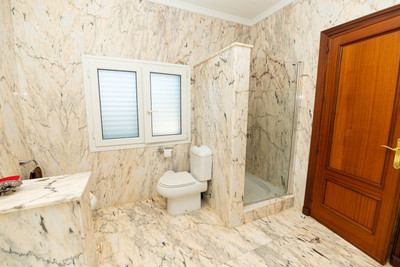 Upstairs there are three bedrooms which are double and almost triple the standard size. All of them have their own bathroom en suite. All the rooms and bathrooms are exterior, so they have plenty of light and ventilation. The master bedroom has a shower and hydro-massage bath in the bathroom.