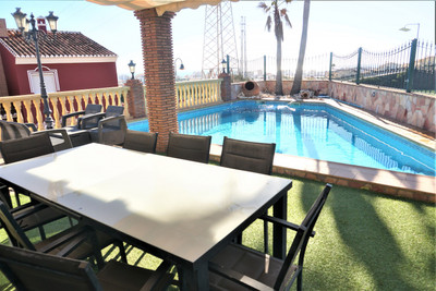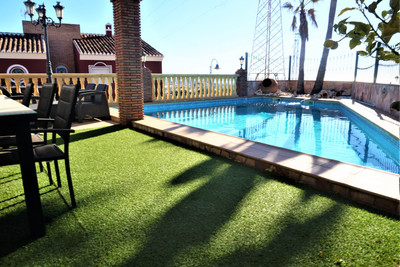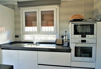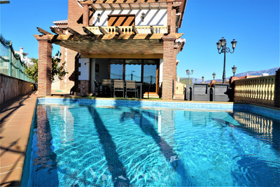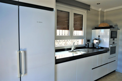 This Villa is situated in Viña Málaga. It is in a very quiet area, but it is close to the city center, shops, pharmacies, school and the beach. It is a very modern Villa that was built in 2014 and it ́s in perfect condition. It consists of 4 floors. On the ground floor we find a garage of about 200m2, where you can fit between 4 – 5 cars. There is also a small guest toilet and a storage room. It also has a worktop with a sink. Going up to the next floor we find the fully equipped kitchen, from where you have access to a terrace. On the same floor there is a bathroom with a shower. As well as one of the bedrooms, with a built-in wardrobe. There is also the dining room and the living room which opens onto the terrace and the swimming pool with a large window. This floor has underfloor heating. Upstairs is the master bedroom, which includes a dressing room and a large bathroom. There is also another bedroom which includes a built-in wardrobe. This floor has access to the roof terrace of the house. We are pleased to be able to present this dream property to you soon, either personally or via virtual viewing. Because this world, it is unique – just like our Axarquía. In Andalusia. On the Costa del Sol. Here, on the sunny side of life…