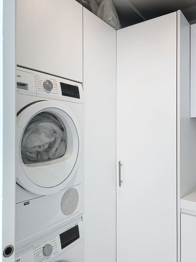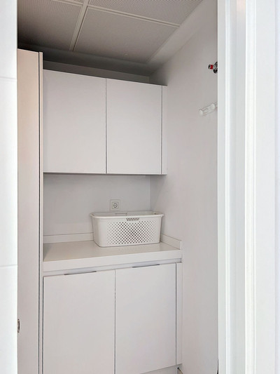 Next to the open plan kitchen you have a separate laundry room with washing machine and dryer.