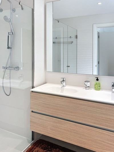 The apartment consists of a nice entrance hall , 3 spacious bedrooms all with built-in wardrobes and 2 bathrooms , 1 with rain shower , 1 with a bathtub , both with a double sink. The master bedroom overlooks the garden and has an ensuite bathroom.