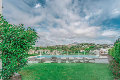 A large private terrace spanning some 70 m2 offers an additional lovely exterior entertainment area and the surrounding communal gardens gives easy access to the communal swimming pool area.