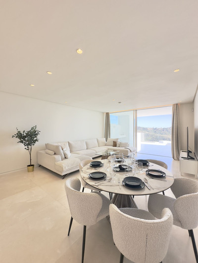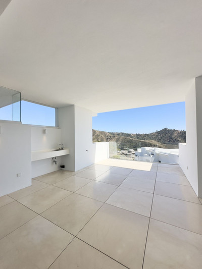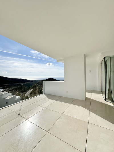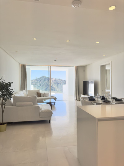 This is an open-plan layout property. The living room is connected to a spacious terrace, where you can enjoy panoramic mountain and sea views. The master bedroom with its ensuite bathroom has access to the terrace. The guest bedroom and bathroom, kitchen and a laundry room. There is UFH through the property and its being sold with an underground parking place and storage.