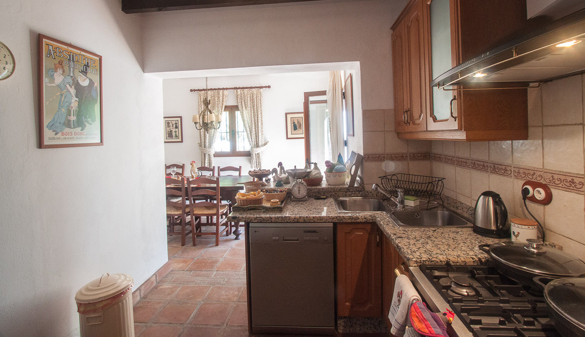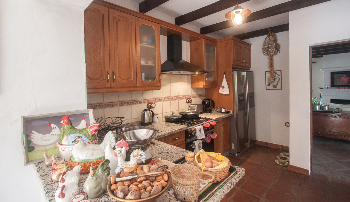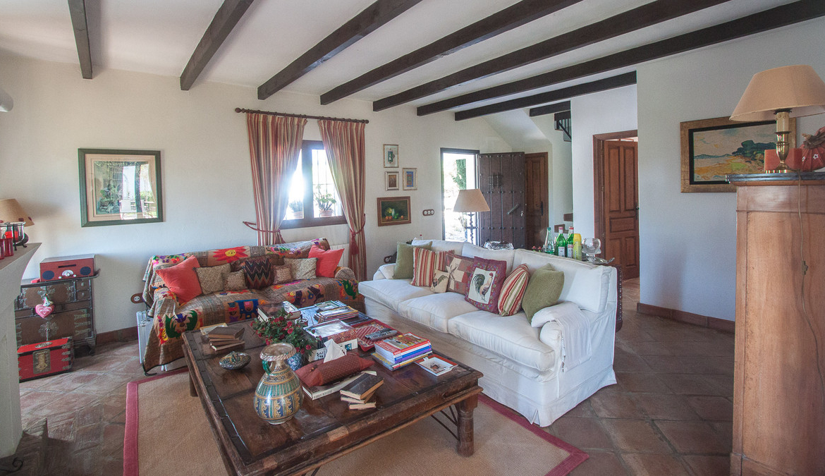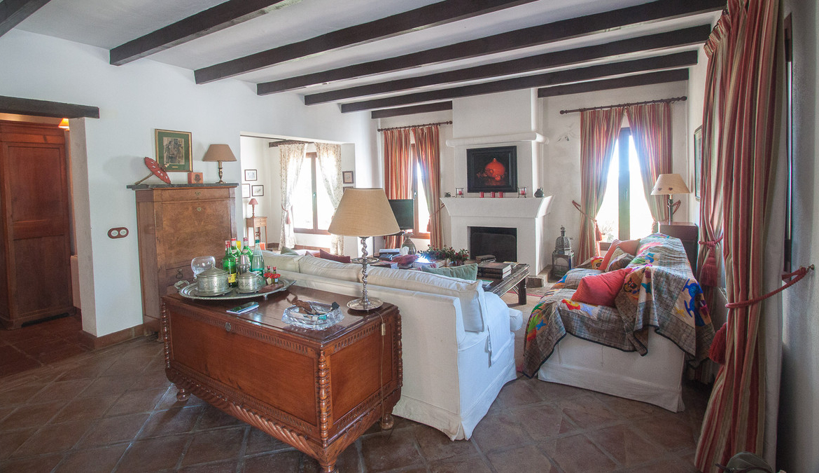 At the entrace of the finca there is a parking for several cars, next to the house there is a very nice pergola which gives access to the livingroom of the house, which has wooden beams on the roof and a majestic fireplace, from the livingroom you can access a nice covered terrace and the beautifull garden.