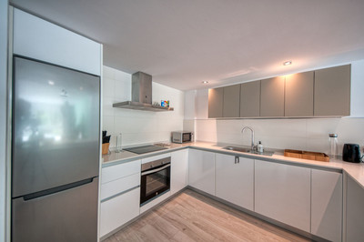 Spacious penthouse in Benahavis with the following layout. The main floor features an open-plan living area leading to a terrace with views over the pool and village. The modern kitchen is fully equipped with top-of-the-line appliances and additional storage.