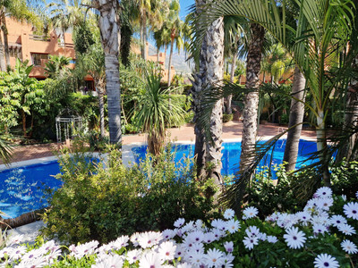 Magnificent semi-detached house in the Golden Mile and Nagueles area with wonderful architecture, which together with its lush tropical gardening, adult/children's pools and large porch areas make this location a wonderful place to live. Enjoy the best of an independent villa with the advantages of living in a gated community. Independent entrance to the house, independent entrance to the private garage with 3 spaces (it is not the community garage). The best of a villa in a gated community