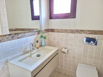 The rooms are also soundproofed, with relaxing views (windows to the garden and sea) and comfortable (with well-designed built-in wardrobes). The very bright bathrooms (with a glass ceiling and a large lattice window), with a hydromassage bathtub, a large and comfortable shower, with two sinks and built-in furniture, with a towel rack to dry and heat the towels, with a large mirror front and direct access to the master bedroom dressing room.
