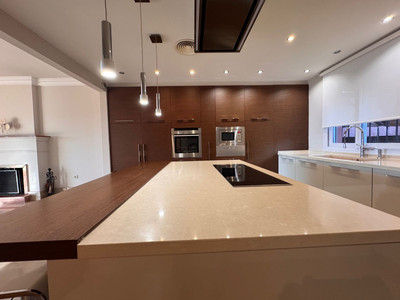 It features 3 spacious en-suite bedrooms, a guest toilet, a large open-plan kitchen integrated into the living room, a large sunroom, and a front garden with beautiful views.