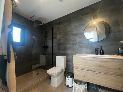 The property is distributed over 4 floors. On the ground floor there is a toilet, the bright living-dining room and the open-plan kitchen, all with a perfect transition to the main terrace. On the first floor, which is accessed via a modern designer staircase, there are 3 bedrooms and two bathrooms, one of them en suite in the master bedroom. In the basement there is a large open space that can be used as a second living room or a fourth bedroom, a laundry room and a large storage room that can be converted into a walk-in wardrobe.