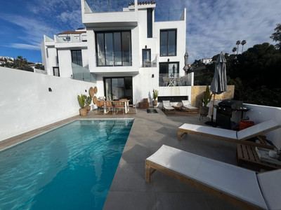 Magnificent newly built 3 bedroom semi-detached house located in Torreblanca, Fuengirola. This is a development of 4 exclusive homes of great quality with a very modern design and large indoor and outdoor spaces, highlighting the large solarium and private pool.