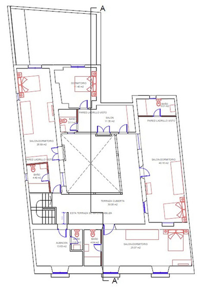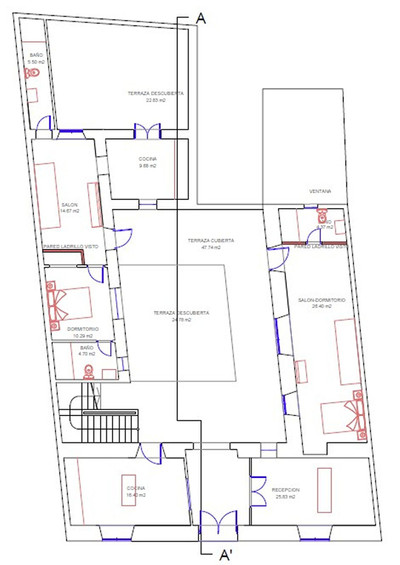 The design proposes the construction of a large entrance hall on the ground floor