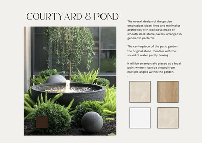 with large glass doors leading to the central courtyard with a fountain and a