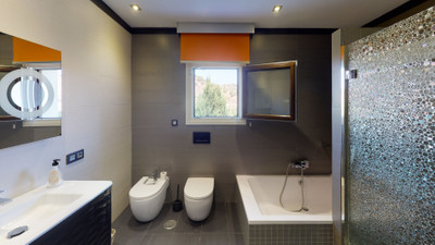 Fantastic 8500 m2 finca, completely fenced, with a single-storey 370m2 house, in Almayate. Less than ten minutes from the motorway, ten minutes from the beach and fifteen from Torre del Mar. Upon entering the finca by the electric gate, at your left there is a huge grassy plain with fruit trees where you could make a pond, in front of the gate there is space to park more than ten cars -five under a covered parking- and your right, the house. There is a plantation of approximately 300 mangos and fruit trees of different kinds. The property has water from the irrigation community and from a shared mine that can be used both for the maintenance of the crops that are currently grown on the land of this magnificent estate and for the provision of water to the property. Outside we find a terrace open to a beautiful and well-kept garden and the 40 m2 saltwater pool, from where you can enjoy incredible panoramic views of the Mediterranean Sea. There is a full bathroom to use when you are outside. On the west side of the house you can access a fully equipment gym. Following the garden there is a piece of land that adjoins the wall of the house where you can build two or three more bedrooms and a bathroom. Opposite, at the back of the finca, there are around 250 planted mangoes that produce a considerable income each year. The interior of the house consists of three bedrooms – all with great fitted wardrobes – and two full bathrooms – one of them ensuite in the master bedroom that also has a large dressing room – a large lounge and dining-room with fireplace and an open kitchen , very spacious and equipped with state-of-the-art appliances. Next to the lounge there is a large room that is used as a study-office that could be a fourth bedroom. The windows and shutters are all electric and security. The house, like the land, has a perimeter alarm system. It also has central heating and air conditioning. If you are looking for a haven of peace, where you can enjoy absolute privacy, first qualities in everything that you can think of and quick and easy access to all places, this is the house you were looking for.