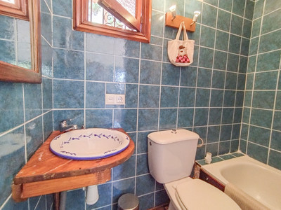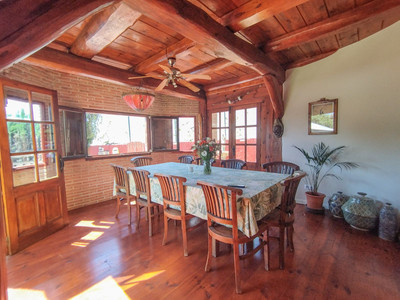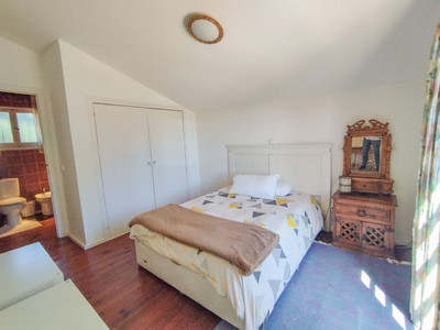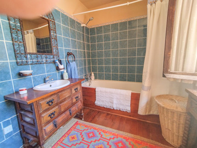Main house with 4 double bedrooms, 1 single bedroom, 2 large bathrooms, and 2 smaller bathrooms. Guest house with a living room-kitchen, 1 bedroom, and a small bathroom.
