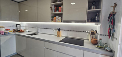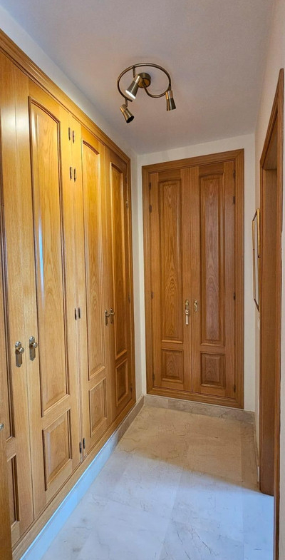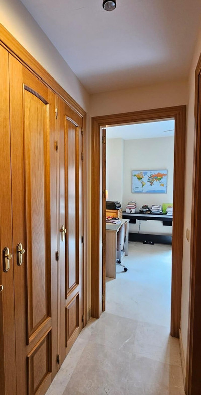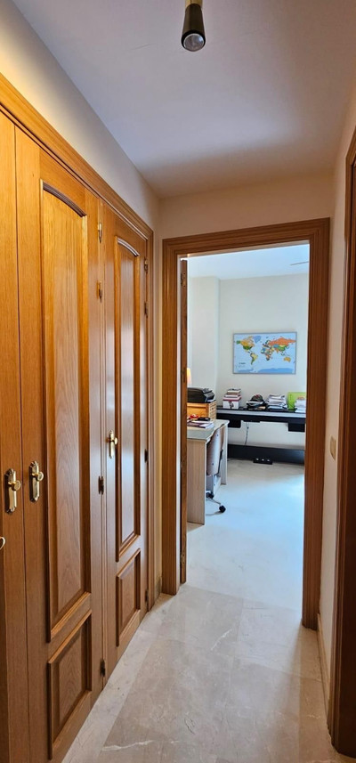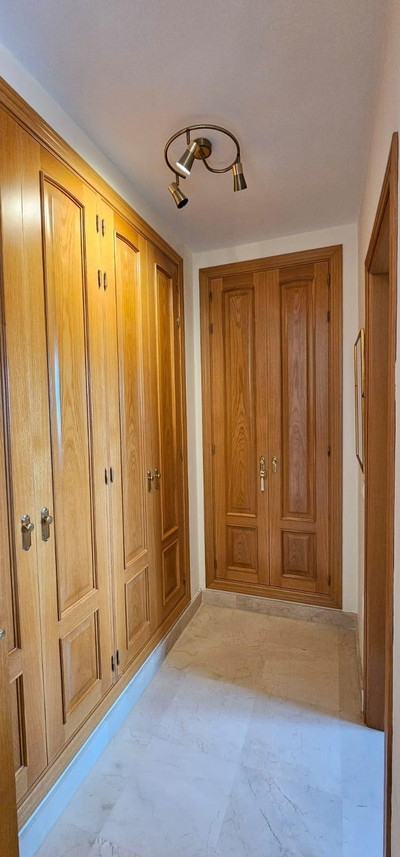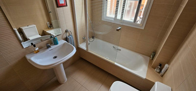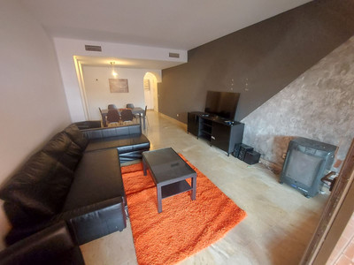 The main floor comprises a spacious living room with a fireplace and access to a terrace with spectacular panoramic views over the new Mijas park, Fuengirola, and the Mijas mountain range. There is a fully equipped kitchen and an adjoining glazed terrace, as well as a bedroom suite.