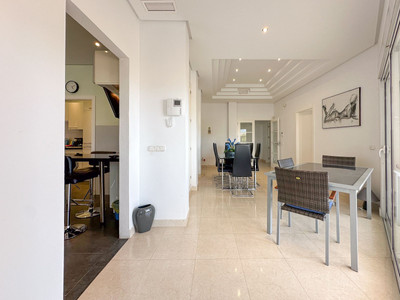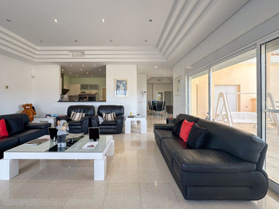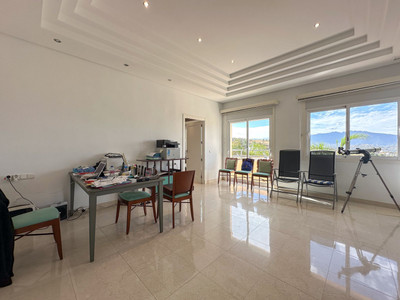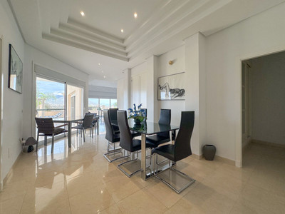 Discover this incredible villa, peacefully located in the quiet urbanisation, Cerros del Águila, with breathtaking panoramic views that stretch as far as the eye can see. Upon arriving to the villa you can either park in the private driveway or in the garage where there's space for 2 cars. Here you are greeted by an inviting 514 m² villa that radiates tranquillity, quality and relaxation, enhanced by several distinctive features.