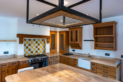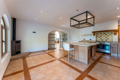 – Fully fitted kitchen with central island and log burner