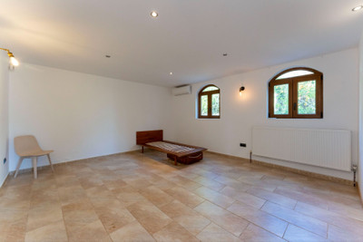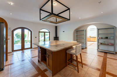 Practicality meets sustainability with two wells on the property providing ample water supply for domestic use, the pool, and the gardens. Additional features include central oil heating, air condi-tioning throughout, and top-notch security.
