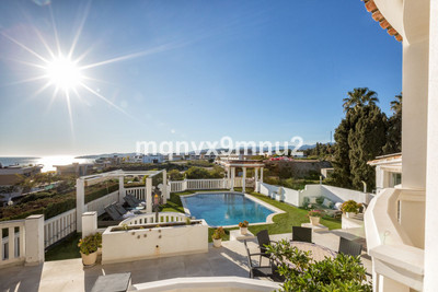 The main suite comes complete with dressing room , bathroom and private terrace with breathtakingly extensive views along the coast and towards Marbella