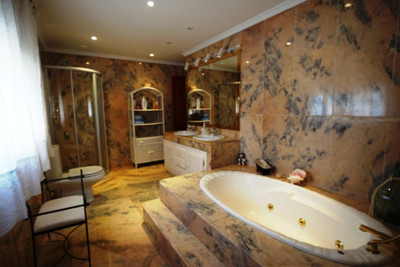 The house built over 2 floors 20 years ago, is presenting some major facilities and equipments; 5 bedrooms (2 of which are en-suite), 3 large fully equipped marbled bathrooms + 1 guest toilet, some great terraces with sea & mountain view, and lots of facilities like : a good size pool with a separated outdoor Jacuzzi, a kitchen garden, lots of storage area for tools and equipment, two dining rooms, one for night diners and another for lunches, 2 living rooms, 1 with chimney, 1 fully equipped kitchen with direct access to the entrance of the property, TV room, cellar, laundry room, covered patio with a large terrace for lunches with BBQ area and even 1 of the bedroom is medically equipped (perfect for elder people). As well as great sea & Mountain View