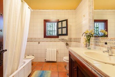 Rustic style villa distributed over three floors, located in a quiet area of Elviria. The property has four bedrooms, two bathrooms and a toilet, a fully fitted kitchen and a spacious living room. It is characterized by its high ceilings, its Andalusian style and the large basement with an area of 200 m2. It also has a garage with capacity for three cars.