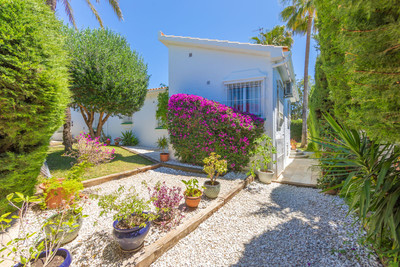 VILLA WITH ATTRACTIVE AND BEAUTIFUL MEDITERRANEAN CHARACTER, DISTRIBUTED ON A COMFORTABLE GROUND FLOOR AND LOCATED ON THE FIRST LINE OF GOLF, OF THE PRETIGIOUS REAL CLUB DE GOLF DE GUADALMINA. Located in a corner, in a cul de sac, located by the 18th Tee of the south . Enjoy a beautiful mature garden, very well maintained, with a multitude of trees and plants. LOCATED, 2 km from San Pedro de Alcántara and 6 km from Puerto Banús. Estepona and Marbella 15 min. Restaurants, Shops, and Leisure Areas just a 10-minute walk away and the beach a 5-minute drive away. Completely surrounded by Golf Courses and just a 3-minute walk from the golf clubhouse. (Golf share optional). Enjoy complete tranquility and privacy. South facing with great light and relaxing views of its excellently maintained mature garden and pool. It has a parking area for 2 cars at the entrance of the house plus a closed garage. In good condition and magnificently built, this property is distributed on a very comfortable single level. With a living room with high ceilings with wooden beams and direct access to the porch, garden and the kidney-shaped pool. The master bedroom en-suite with dressing room and direct access to the garden. A large and very bright kitchen with also high beamed ceilings and a dining area located next to the access to the parking area. The other good size bedrooms share 2 full bathrooms. The home has the option of separating an apartment by a door. From the cozy solarium enjoy relaxing views of the garden, golf courses and mountains. It also features a semi-basement with access from outside the house that could be used as a gym, games room, etc. It has great possibilities to change its distribution. We highly recommend visiting this fantastic property.