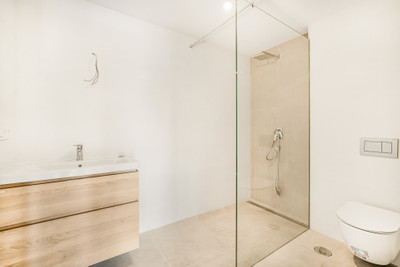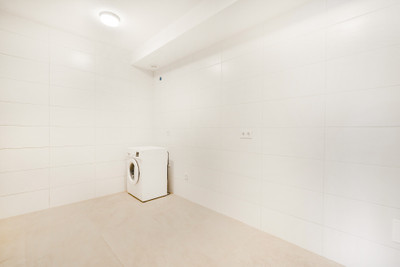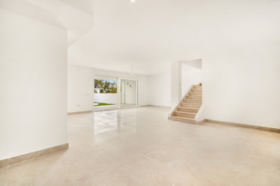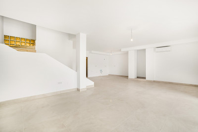 The property is distributed over three levels plus a solarium. The entrance level has an open plan living and dining area; pre installations for a kitchen; guest toilet; and access to a spacious terrace.
