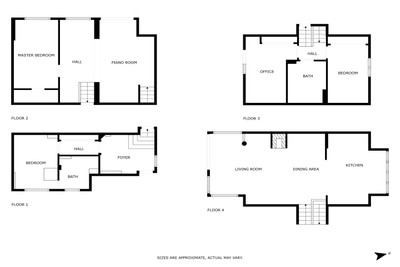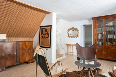 The house is arranged across four split levels, connected by a central staircase. Every room looks out onto the surrounding garden, offering a strong sense of privacy and a seamless connection with nature. The gently sloping plot allows for multiple direct garden access points from different levels of the house. Conveniently, the property has access from two separate streets, enhancing its connection with various parts of the neighborhood.