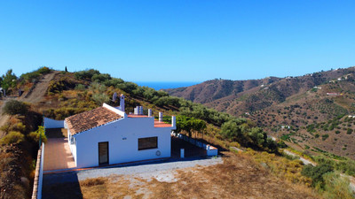Nestling in the foothills of the La Torca mountain and just 40 minutes from the sandy beaches of Torre del Mar this lovely bungalow is surrounded by rugged landscapes and peaceful farmland. Well connected Malaga airport is just an hour away. Currently configures as three to four bedrooms and one bathroom will no doubt want to tinker about a bit, letting in more light through patio doors and perhaps unifying the front portion of the house into a grand flowing living area of seating, dining and kitchen. That would leave you with two bedrooms and two bathrooms to the rear. The property has a garage, washroom and large storage room alongside an outdoor kitchen and kennels. Plot size is 377m2 and the house excluding the outbuildings is 112m2. There is room for a pool in the front garden subject to planning permission. There is very low light pollution and you will see the stars like you may never have seen them before.