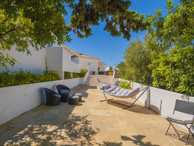 Outside, you will enjoy a garage and parking space, as well as a large front terrace, pool and shower. The garden has been designed for easy maintenance and is made up of terraces with unique floors from India, with potted plants and quiet corners for relaxation.