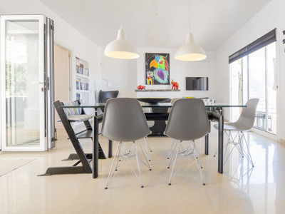 The interior stands out for its bright living room, which connects to large and cozy terraces, one of them equipped with a barbecue and awning, ideal for enjoying the outdoors.