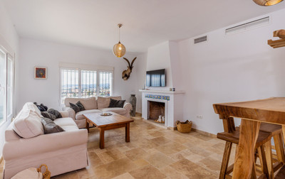 Inside, the villa features a bright and cozy living room, five spacious bedrooms, and three modern bathrooms. The stylish kitchen with a dining area has direct access to an east-facing terrace – the perfect spot to enjoy the sunrise with stunning mountain and sea views. A second exit leads to a south-facing covered terrace with a dining area and barbecue, ideal for entertaining and outdoor dining.