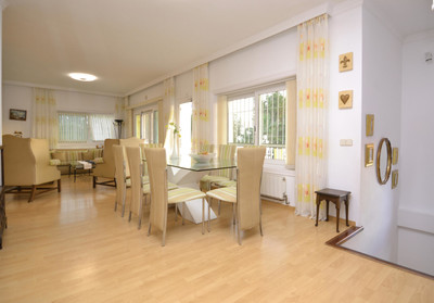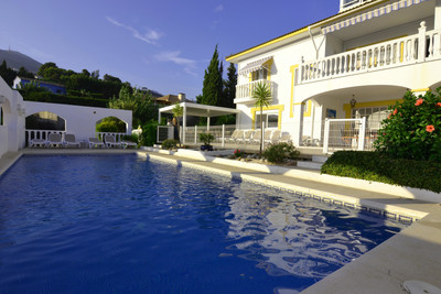 .Impressive luxury villa 5 minutes walk from the beach. With more than 1,700m2 of very private plot this large villa with more than 340m2 built has 7 bedrooms with 7 bathrooms.. Each bedroom enjoys a private bathroom. Distributed on 3 levels. On the main floor: large hall with a large built-in closet large kitchen of 45 m2 with laundry and access to a terrace of 25m2 and the back garden with BBQ area, two double bedrooms with en suite bathrooms, large living room with access to a west facing terrace with wonderful views. Ideal to enjoy the sunset. On the attic floor there is only a large bedroom with its bathroom en suite and a beautiful terrace overlooking the bay of Fuengirola. On the ground floor there are 4 bedrooms, kitchen, laundry, a sauna and a lounge with access to the pool area and leisure area.