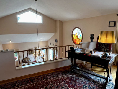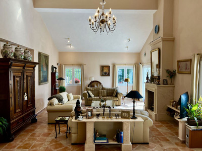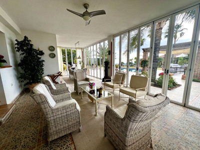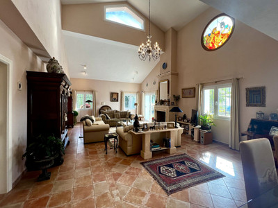 Gated, private land of 1.350m2 with a villa and separate garage. The villa entrance is a good sized hall leading direct to all rooms on the ground floor. The large lounge living dining has lots of light, is not only spacious for the size but also breathes volume by the heigh ceiling and loft-type study. The lounge has acces to the main terrace and the conservatory. A well working fire place for the colder winter evenings.