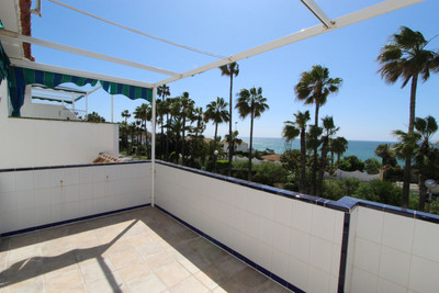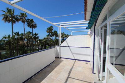 A marble and Andalusian tiled staircase takes you up to the first floor where you have 2 spacious double bedrooms with fitted wardrobes and a bathroom. The master bedroom has access to another large south facing terrace with even better sea views than the ground floor terrace.