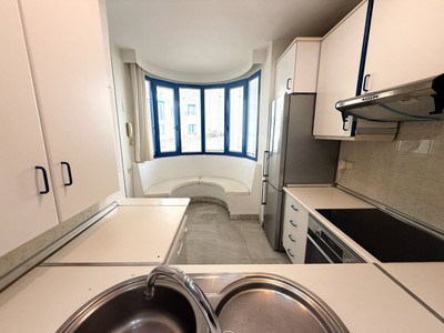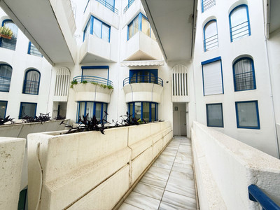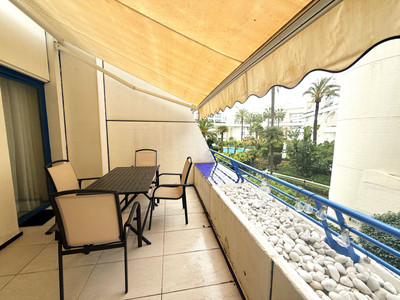 The property would benefit from some cosmetic updating in the form of new kitchen and bathrooms but is perfectly ok to live in and would make a super family home or rental investment. The gardens and pool area in this development are outstanding and it is a very well run community with security at the entrance. The apartment has a lift up to the second floor from the underground parking. You enter into a nice hallway with storage and the living room is open plan with an art deco feature fireplace in the center of the room and doors opening out onto a West facing covered terrace which is quiet and private and you can see the pool area below. The kitchen has a unique bay window with a seat below. Although dated, the kitchen is fully equipped and fully functional with a serving hatch into the living area giving the impression that the kitchen is separate yet integrated. On this level there is a guest cloakroom.
