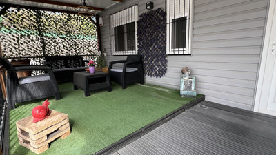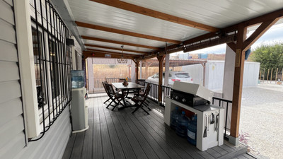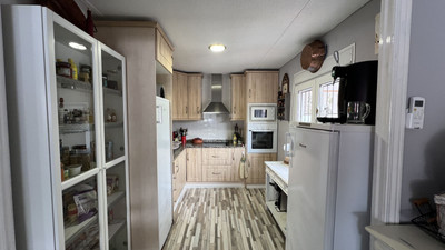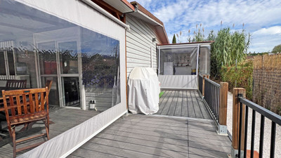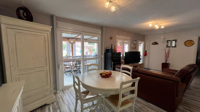 Great opportunity to own a charming, sunbathed home in a beautiful setting. This high-quality mobile home offers all the comforts you need. It features a fully fitted kitchen, a cosy living room, and a bright dining area, with direct access to a covered terrace. The terrace can be enjoyed year-round, even in winter, thanks to its removable shades.