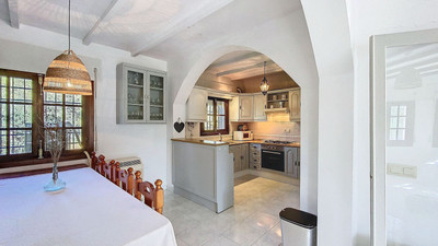 The property sits on a generous plot of 6,178 m² and has a total built area of 124 m². The large private swimming pool, approximately 50 m², is surrounded by spacious terraces—perfect for soaking up the sun and taking in the stunning surroundings. The spacious garage fits one car and could potentially be converted into a guest apartment.