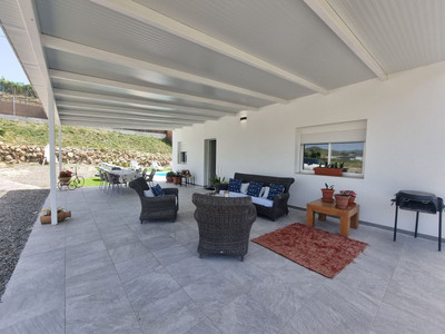 The single-storey home features a spacious covered terrace, ideal for enjoying the natural surroundings all year round. Inside, it offers two bedrooms, a full bathroom, and an open-plan kitchen connected to the living room, with a practical central island that adds both functionality and style.
