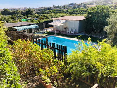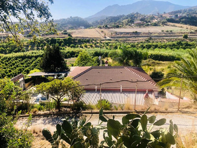 This land is divided into three different levels. On the first level, there is the main house and the parking area. The second level houses the swimming pool and a smaller house. Finally, the third level is planted with fruit trees.