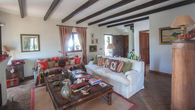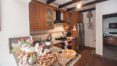 At the entrace of the finca there is a parking for several cars, next to the house there is a very nice pergola which gives access to the livingroom of the house, which has wooden beams on the roof and a majestic fireplace, from the livingroom you can access a nice covered terrace and the beautifull garden.