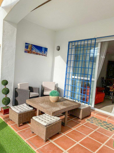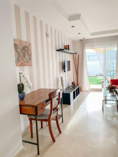 Apartment in Calahonda. It has 2 bedrooms and 2 bathrooms, one of them en suite. 80 m2 private garden. air conditioning. . common areas with swimming pool and gardens. excellent location: 5 minutes walk from the beach and very close to the port of Cabopino de Marbella. Surrounded by supermarkets, banks and all services within walking distance.