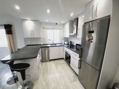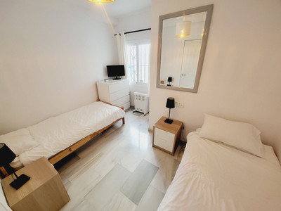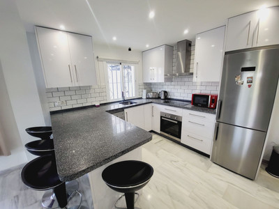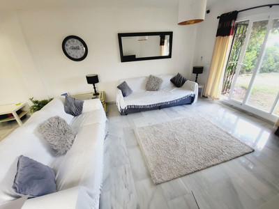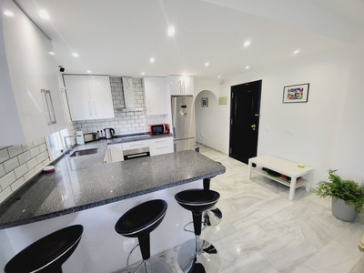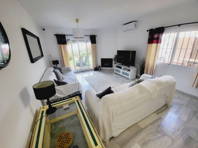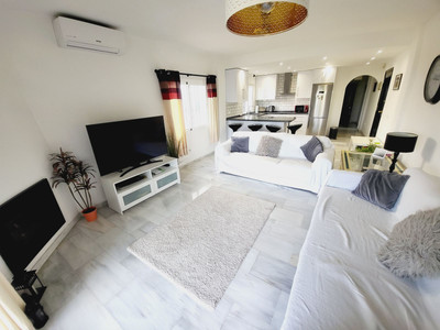 SUPER TWO BEDROOM TWO BATHROOM APARTMENT WHICH HAS BEEN RECENTLY RENOVATED AND IS PRESENTED IN IMMACULATE CONDITION. LOCATED IN MID-CALAHONDA CLOSE TO A NUMBER OF LOCAL AMENITIES AS WELL AS BEING ON THE BUS ROUTE SERVING CALAHONDA TO THE MIRAMAR SHOPPING CENTRE IN FUENGIROLA. THE APARTMENT ITSELF IS SITUATED ON THE GROUND FLOOR OF THE COMPLEX WITH THE LOUNGE OPENING UP ON TO A COMMUNAL GARDEN AREA WHICH HAS THE FEEL OF BEING A PRIVATE SPACE. THERE IS ALSO A TERRACE AREA THAT IS IDEAL FOR DINING AL-FRESCO STYLE. INTERNALLY THE APARTMENT IS IN FANTASTIC CONDITION AND BRIEFLY COMPRISES OF A LARGE OPEN-PLAN LIVING SPACE WITH A MODERN WHITE HIGH GLOSS KITCHEN THAT HAS GRANITE WORKTOPS AND BREAKFAST BAR THAT OPENS TO A VERY SPACIOUS LOUNGE. AN INTERNAL HALLWAY LEADS TO A GUEST BEDROOM FURNISHED WITH TWO SINGLES, MODERNISED GUEST SHOWER ROOM, GENEROUSLY PROPORTIONED MASTER BEDROOM WITH AMPLE FITTED WARDROBES AND A SUPERB EN-SUITE BATHROOM WITH A GREAT SIZED WALK-IN SHOWER.