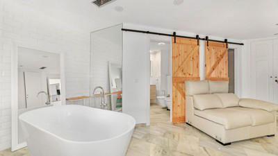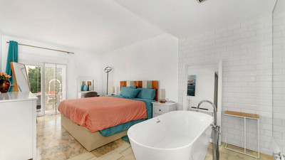 The master bedroom is a sanctuary of relaxation, featuring lavish twin en-suite bathrooms, a free standing bath and a generous walk in closet. The two additional bedrooms/apartments are thoughtfully designed with comfort in mind, each offering plenty of space and plenty of natural light. One maybe rented short term for holiday lets and the other for long term as all three dwellings have separate entrances.