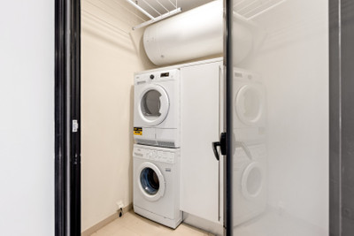 The fully equipped independent kitchen, with a spacious laundry room, provides a functional and refined space with large windows, ideal for culinary enthusiasts.