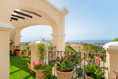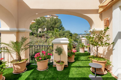 The property features three bright bedrooms, each with its own en-suite bathroom and private terrace, offering a design focused on comfort and elegance. The spacious south-facing living room is flooded with natural light and opens onto an impressive terrace, where you can enjoy panoramic sea views in an intimate and serene atmosphere.