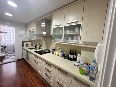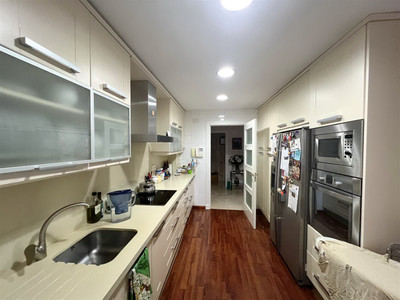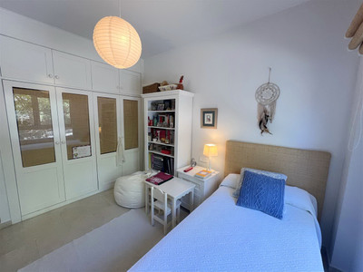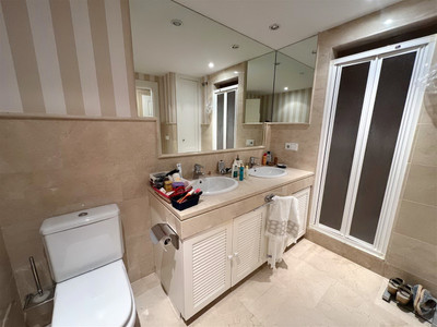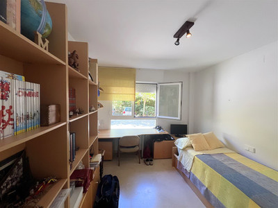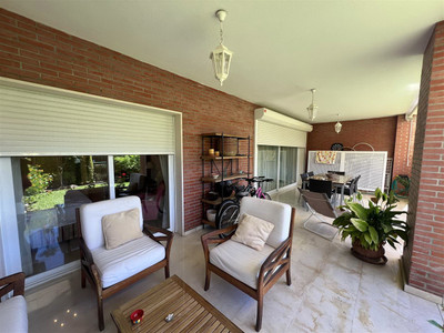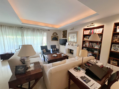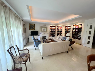 The apartment consists of 4 bedrooms, 2 bathrooms and a guest toilet. The master bedroom has its bathroom en suite. Two other bedrooms share the second bathroom. The fourth bedroom can be considered a service bedroom since it is attached to the kitchen. The kitchen has been completely renovated and is modern and equipped. The bright and south-facing living-dining room with fireplace leads to the large covered terrace with views of the large gardens and the pool area.