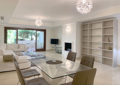 Beautiful – luxurious corner apartment in stunning urbanisation ̈Lomas del Rey ̈ in The Golden Mile! This apartment consists of two large bedrooms with en suite bathrooms, guest toilet, large kitchen with dining room, cozy living room with fireplace, large terrace and garden. All rooms have air conditioning and underfloor heating.