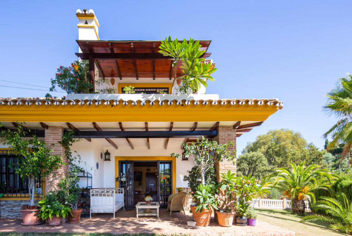 Rustic style villa distributed over three floors, located in a quiet area of Elviria. The property has four bedrooms, two bathrooms and a toilet, a fully fitted kitchen and a spacious living room. It is characterized by its high ceilings, its Andalusian style and the large basement with an area of 200 m2. It also has a garage with capacity for three cars.