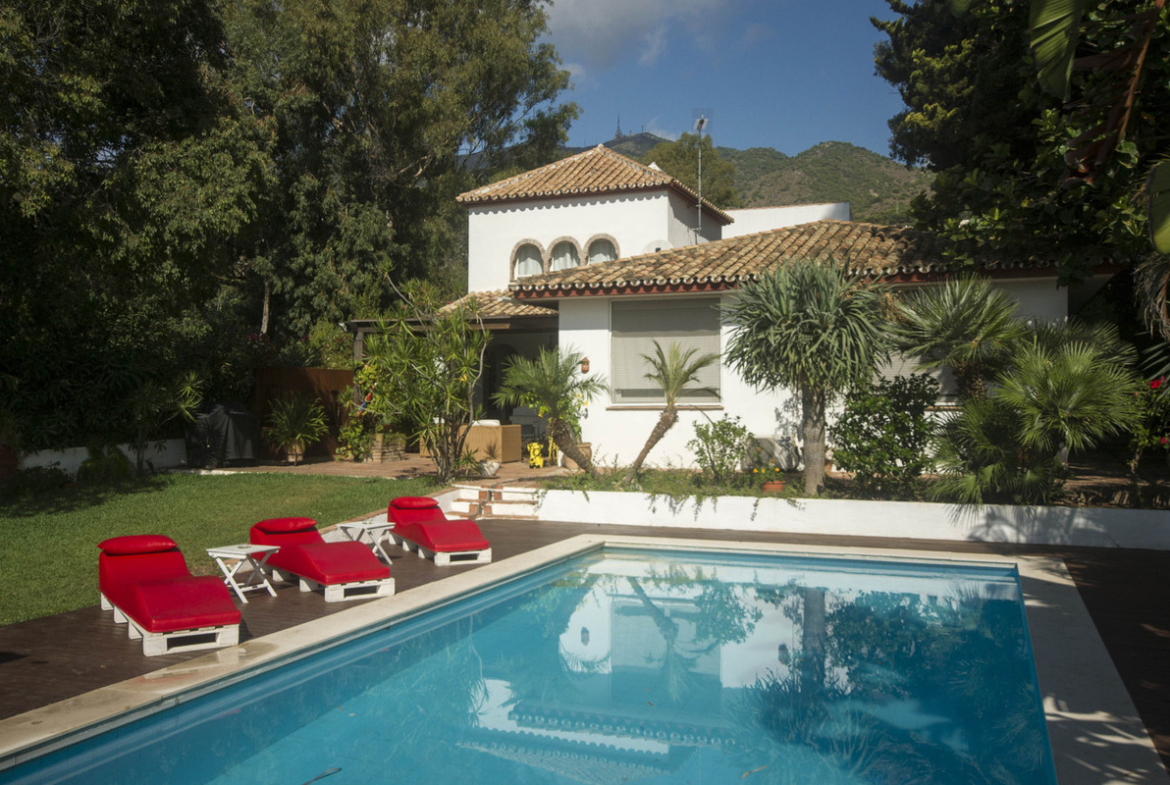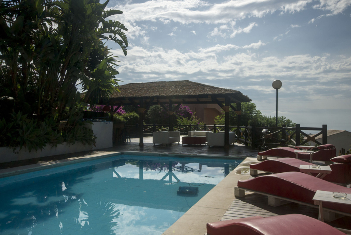 Detached villa with 5 bedrooms, 4 bathrooms, lounge, kitchen with office, terrace, garden and pool on plot of 5000m2, has parking for 4 vehicles and two independent apartments and beautiful sea views. . Beach about 3km.